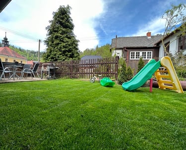 Pro děti máme venkovní hřiště a krásnou zahradu k relaxaci.